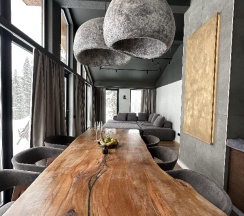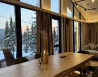 Уютные, в современном стиле с панорамным остеклением и комфортной подсветкой. Стильно выглядят как изнутри, так и снаружи. В доме тепло, полы с подогревом. Отдельно кайфанули в чане с горячей водой и заваренной хвоей. В целом, действительно, очень даже качественный достойный вариант для проживания, отдыха после «горнолыжной каталки». Рекомендую.