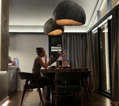 А наш домик это отдельная любовь, красивые каменные светильники, невероятно классный огромный диван, качественные стулья, подсветка во всем доме, шикарный санузел и и даже красивая эстетичная посуда, в доме настолько комфортно что не хотелось даже никуда лишний раз выходить🫶🏽