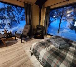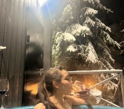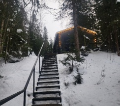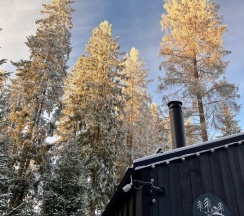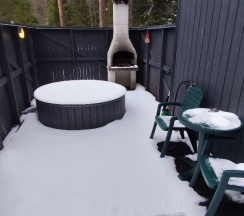 Отдыхали здесь на прошлой неделе с молодым человеком! Из дождливого города попали в зимнюю сказку! Дома чистые и уютные, а вид из панорамных окон открывается, конечно, нереальный. На улице было морозно, но, сидя в купели, холод вообще не ощущался. Можно было в комфорте наблюдать за заснеженными соснами😊