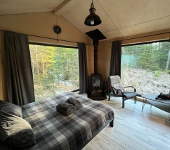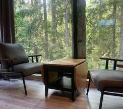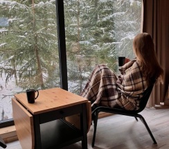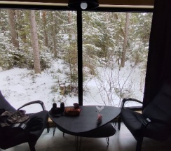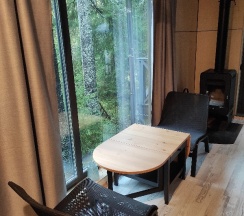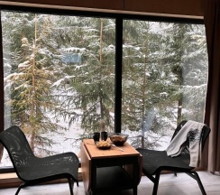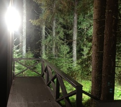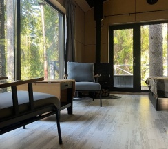 Отдыали с женой и ребенком (7 мес) в домике с двумя панорамными окнами с 16.04-17.04, и это просто восторг! В доме есть все необходимое, в плане быта все продумано до мелочей, интерьер современный. Нас просто восхищали виды из домика на огромные сосны и ели.