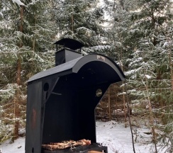 Домик волшебный, теплый, камин топили регулярно, он нас покорил. Мангальная зона идеальная, а домики окруженные елками - ну просто идеальный ход, это стопроцентное попадание.