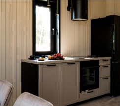 Дома лаконичные в скандинавской стильной эстетике радуют глаз и дарят понимание, что люди , которые строили и реализовали этот проект думали прежде всего о комфорте будущих посетителей. Начиная от эстетики заканчивая окном у раковины для мытья посуды: все дарит удовольствие от пребывания.