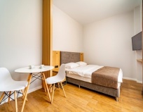 Чисто, уютно! Мы снимали номер с доп местом , и все равно достаточно просторно! Есть мини кухня, посуда, чай!