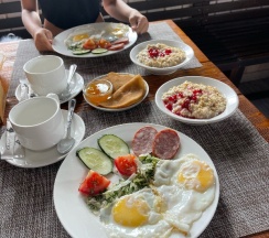 Понравилось: Отдыхали в апреле. Из гостей были мы одни, с нами была собачка... Понравилось всё!! И комфортный номер с белоснежным бельём и всеми удобствами, и завтраки-обеды с ресторанной подачей, и умиротворённая остановка, и отношение персонала, а точнее хозяина Игоря... он сам нас обслуживал и готовил в том числе, очень вкусно!!! Отдохнули для души!!!