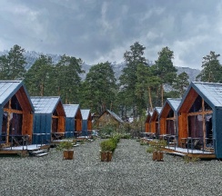 Уютные комфортные домики, провели тут две ночи, есть все необходимое для комфортного времяпровождения. При желании приготовить что то из еды самому есть набор посуды, плитка, чайник. Вода питьевая была предоставлена в необходимом объеме. Есть мангал, можно приготовить что либо на углях. Вся техника работает, теплые полы, есть сплит система. Удобная парковка. Нам с супругом все понравилось 😊