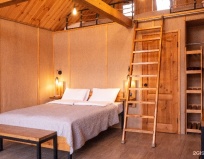 Касательно домика: идеальный интерьер!!! Все продумано до мелочей и сделано с душой! Теплый пол, кондиционер на тепло/холод, питьевая вода, теле, шикарная кровать с таким же постельным бельем, два одеяла! Мансардный балкончик по лестнице, где можно спать детям! В гарнитуре каша, чай! В уборной одноразовые щетки и шампунь/гель! Много пространства за счет высоких потолков! Мы в диком восторге! Спасибо огромное за теплый прием! Процветания вашему лофт-городку!