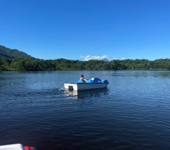Очень атмосферное место. Озеро, природа, тишина. Можно покататься на сапах, катамаранах, лодочках. Есть несколько минусов: в домиках чисто, но хотелось бы больше внимания к посуде : чашки в двух домиках были грязные, на ложках капли. Мы приехали вечером и сХОДИЛИ хорошо поужинали, было вкусно. Каково было мое разочарование, когда на завтрак за 15 тыс в сутки за домик нам дали по маленькой чашечке овсянки (она была не вкусная, потому то мой ребенок, обожающий каши, даже половины не съел, я есть не стала ). На 4х людей нам выдали 4 половинки хлеба, 4 маленьких кусочка колбасы и 4 квадратика сыра. Хотелось бы, чтобы на завтраке за такую сумму настолько не экономили.
