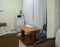 Отель находится прям на вокзале,рядом магазины, хорошая цена. В номере всё есть чайник, холодильник, микроволновка, посуда,фен, чистое постельное и полотенца.