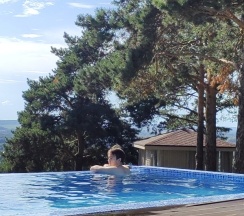 Очень тихое и спокойное место. Территория ухоженная. Уютные номера, тёплый бассейн с красивым видом, неплохая еда в ресторане. Персоналу отдельный лайк — все очень приветливые. Есть чем заняться и днём, и вечером. Для детей есть игровая в отеле и площадка с батутами на улице. Хочется приехать ещё. За 2 дня прям перезагрузились