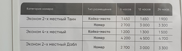 Можно заселиться в любое удобное время, на любой из тарифов 6,12,24. Это очень круто, удобно для приезжих! Вежливый персонал, в номере чистенько!
