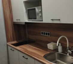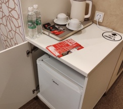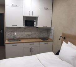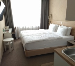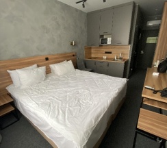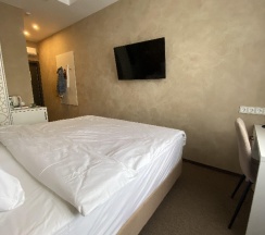 Выбрала этот отель по отзывам. Понравилось что новый, т.к. по другим отелям много отзывов что давно нет ремонта и старая мебель. Здесь в этом плане всё отлично! Заказывали двухместный стандарт double по итогу получили номер с кухней и двумя сдвинутыми односпальными кроватями. Но менять номер не стали, т.к. он больше чем бронированный. Спать в итоге оказалось удобно, т.к. кровати широкие и нет ощущения что это не двухспальная кровать. Белье белое, чистейшее! Порадовала возможность отключить холодильник. Единственное не хватало обеденного стола. Был только совсем маленький за которым может нормально пообедать один человек. Понятно, что номер маленький и сделали что могли. В целом всё отлично и по номеру и по сервису. Удобное расположение. Рядом метро, ул. Баумана, Старо-татарская слобода, Туган авылым. На ресепшене была карта и список экскурсий. Есть возможность оставить вещи в кладовке.