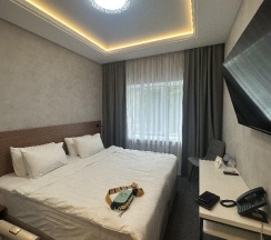 Про номер: заявлено как на сайте, мы удивились, что даже швейный набор в номере был. Видимо отель новый, смотря по технике и мебели, отдельные 5 звезд за красивые отель. Перед поездкой позвонили в отель, чтобы узнать нужно ли нам что-то везти (мыло, гель и т.д), но нас заверили, что все есть, так и было. В нашем номере была кухня очень удобно, особенно если остановились на 4 дня. Персоналу огромное спасибо, убирались каждый день, даже ходит никуда не пришлось за утюгом, все принесут в номер. Приедем обязательно с нова и именно к Вам🤗