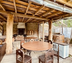 Провёл с семьёй в этом прекрасном месте потрясающие выходные. И этому способствовала погода, природа и удивительная атмосфера дома, в котором все продумано и выдержано в едином стиле, сделано с душой и любовью. хозяин дома приветлив и радушен, легко разрешает любой вопрос. наши сердца покорил его совершенно очаровательный пес, место разнообразно досугом. каждый здесь найдет то, за чем приехал, весельем или отдых после рабочих дней. наша семья приехала на пару дней. плавание на сабах, купание в речке, плескание бассейне и вкусная полезная еда. здесь, есть всё для приготовления, что-то можно попросить приготовить.
