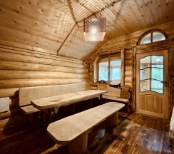 Большое спасибо за такое замечательное атмосферное место! У нас проходило там корпоративное мероприятие. Территория большая, есть баня, беседка, банкетный зал. Рядом с баней есть пруд, в котором коллега наловил карпов. Особенного внимания заслуживает дом. В нем очень много комнат, есть каминный зал с удобными диванами, интересные элементы интерьера в виде рогов, шкур медведя и волка и многое другое. Каждый нашел себе занятие по душе: играли в бильярд, танцевали в банкетном зале (кстати колонка для музыки очень мощная), сидели в каминном зале и пели песни под гитару, парились, рыбачили, жарили шашлыки. Всем рекомендую это замечательное место!