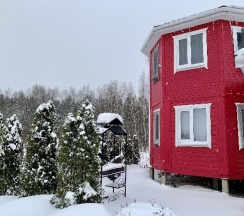 Отличная база отдыха - несколько современных коттеджей с баньками и мангалами, ночная подсветка просто сказочная! Мы арендовали коричневый дом с панорамными окнами.В доме было тепло и чисто, все необходимое хозяева предусмотрели, спасибо. На веранде купелька, которую затопить одно удовольствие, чтобы кайфовать в горячей воде под снегом и звездами. Внутри дома банька. Мы сказочно провели здесь выходные, рекомендуем!👍