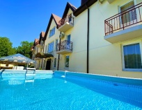 Было ожидание/реальность с бассейном, опять же, перед отъездом увидела новые отзывы в 2гисе, что фото бассейна сделано так, что даже не подумаешь, что это обычный каркасный бассейн, да, вода в нем холодная, но бассейн есть и это здорово. По поводу того, как добираться до отеля, так все предельно просто, с остановки прямо, направо и там так же, не так много пройти и вы на месте, это уже просто придирки клиентов. Админы просто уже были замученные за это лето, а так очень даже приветливые ребята, мужчина, вроде представили его мне Константином, очень приятный человек, желаю вам всего хорошего и адекватных посетителей. Очень много детишек, всегда бегают играют, никогда не скучно, жили в трехместном номере с удобствами целых две недели с августа по сентябрь, есть и минусы и плюсы, для меня самый большой минус это когда очень много пауков на территории, я бы обработала весь участок. А еще кстати рядом всегда гуляют прекрасные лошадки, очень дружелюбные и идут на контакт☺️😊 Рядом хороший аквапарк, в самом отеле предлагают разные виды экскурсий. Спасибо, было очень удобно, я чувствовала себя как дома, только с красивыми видами на горы и море🌊⛰️ Надеюсь мой отзыв раскроет глаза многим, они посетят данный отель и поймут, что ниженаписанные отзывы просто придирки постоянно чем-то недовольных людей