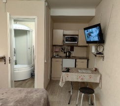 Санузел совмещен с душкабиной, отопления в санузле по факту нет, в связи с чем зимой в санузле прохладно. Может конечно мне такой номер попался, а так все хорошо чисто и аккуратно, рядом магазин магнит и рядом вокзал, удобно в командировке.