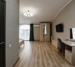 В номере есть: двуспальная кровать, раскладной диван, платяной шкаф, душевая кабина, сплит-система ,фен, одноразовые косметические средства, одноразовые тапочки, телевизор с плоским экраном, мини-холодильник, чайник, бесплатный wi-fi.