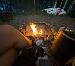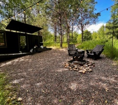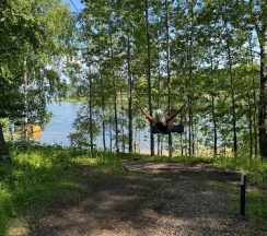 Отличное уютное место, для тихого отдыха. Домик комфортный, есть всё, как в приличном отеле и даже больше. Насколько понял, сейчас есть два готовых домика, третий доделывают- красят. Сами домики на приличном расстоянии друг от друга, и вообще территория большая. В домике кухня с плитой, чайник, посуда и т.д. Возле дома место для костра и два кресла, дрова прилагаются. Днём можно спуститься к реке, мы загорали и катались на Сапе. Пляж песчаный, песок очень мелкий и плотный. Дно возле входа в воду немного мягкое, но терпимо, не проваливаешься. Хозяин сказал, что ведутся работы по уплотнению дна. Вода приятная, купаться можно, течения можно сказать что нет. Сап привезли свой, но в принципе там есть каяк, и его можно взять поплавать.