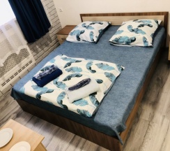 Номер с большой двуспальной кроватью! Собственная ванная комната, одноразовые тапочки, полотенца, ванные принадлежности.