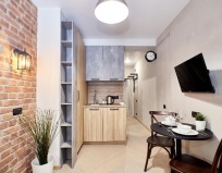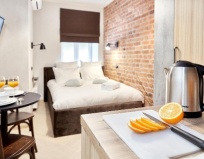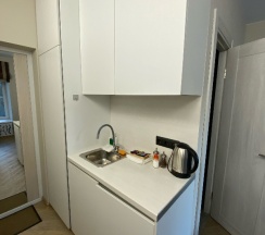 Очень удобные, уютные апартаменты. Заезжали на несколько дней с мужем. Быстро заселили и достаточно рано так как был свободный номер. Дополнительно за это платить не пришлось. Сам номер выше всех похвал. Удобно , что есть чайник , чай и кофе, после увлекательного, но утомительного дня приятно принять душ и попить чай. Удобства чистые. Есть мыло, гель и шампунь для гигиены. Фен. Для путешествий на легке вообще полный комплект в номере, всё есть. Сам матрас на кровати был удобен, выспались.