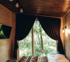 Спокойное,уединение в лесу ,где только ты и природа. На этой локации второй раз и с радостью приеду снова. Здесь хорошо. Просыпаться посреди леса,посидеть послушать чириканье птичек, вежливый персонал и все продумано с заботой до мелочей.