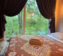 Спокойное,уединение в лесу ,где только ты и природа. На этой локации второй раз и с радостью приеду снова. Здесь хорошо. Просыпаться посреди леса,посидеть послушать чириканье птичек, вежливый персонал и все продумано с заботой до мелочей.