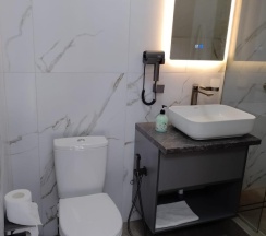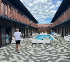 В целом красивое место рядом с морем, есть бассейн это плюс но он не подогреваемый если едете в сентябре и уже прохладно - учитывайте что купаться в нем уже холодно. И минус звезда за скользкое покрытие на территории.