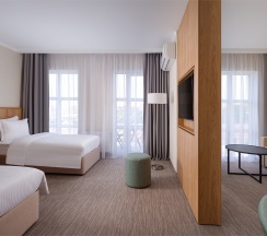 Номера данной категории расположены в пятом, дополнительном корпусе Горизонт. К услугам гостей ресторан шведской линии и детская комната корпуса Горизонт.