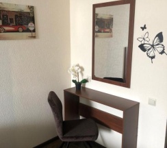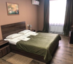 Двухместный номер. Двуспальная кровать c тумбами, стул или кресло. Телевизор со спутниковыми каналами. Cанузел с душем,банные принадлежности, Wi-Fi в холле.
