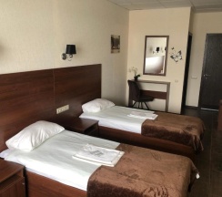 Двухместный номер. Две односпальные кровати c тумбами, стул или кресло. Телевизор со спутниковыми каналами. Cанузел с душем,банные принадлежности, Wi-Fi в холле.