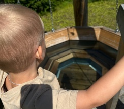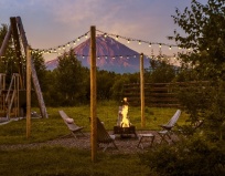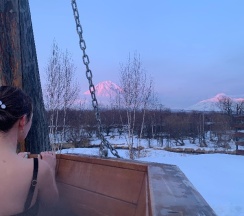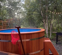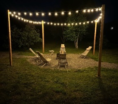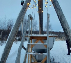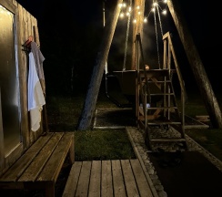 Большая баня, от которой все были в восторге. Чан с невероятным видом и такими милыми лампочками над головой🥹