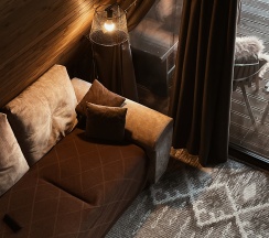 Костровая зона с лавками и качелями предназначена для душевных посиделок с егерем или какао, любуясь огнём и видом гор.