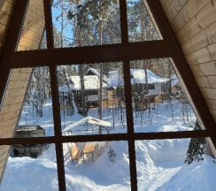 Дом-шалаш на Усе-Это нереально красивое место! Там царят уют и гормония! Отдыхали в домике Бордо в это Рождество. Словами передать впечатления от отдыха достаточно сложно (эмоции переполняют до сих пор) Очень уютный, чистый, комфортный домик! Есть всё для полноценного отдыха! Посуда,чайники-кастрюльки, плитка для приготовления пищи, телевизор, wi-fi (качество связи отличное), кстати мой билайн там тоже отлично ловил, хотя на даче (30 км от Тольятти) качество связи оставляло желать лучшего, а тут проблем не возникало. Есть настольные игры для приятных вечерних посиделок)В домике так же есть холодильник, кондиционер... Душ, туалетная комната на первом этаже🥰 две очень уютные комнаты (одна на первом, а другая на втором этаже) и гостиная с кухней так же на первом этаже. На улице мангальная зона. В домике было очень тепло (температуру отопления можно регулировать) поэтому можно смело ехать отдыхать туда зимой и не бояться холодов. Очень впечатлило панорамное окно во всю стену!!!! На улице ночью горели гирлянды и в домике было как-то волшебно и сказочно! А какая там природа!!!!! На улице, у домика, деревянные стульчики (вечером я там пила чай не смотря на снег), удобный лежак и детская радость-ватрушки! Катались на них с горки-счастью не было предела! Гуляли по берегу Усы! Если Вам хочется отвлечься от городского шума, от суеты-то Вам, однозначно сюда, в Дом-шалаш на Усе! А мы уже предусмотрительно забронировали домик для летнего отдыха🤗😉 уже пора🥰 Ребята, Вы реально Лучшие!!!!! Успехов Вам! Благодарных гостей! Спасибо за трепетное отношение, за заботу, за комфорт! До встречи💗