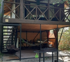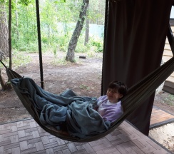 Первый раз ездили 2 года назад, отдыхали в домике под названием Затерянные Гнезда. Отдыхали с мужем и 8ми месячной дочкой. Было очень комфортно и легко, для дочки пркдоставили кроватку, домик находится в тени деревьев что с ребенком очень хорошо. Есть все необходимое для проживания, с собой брали только одежду и еду, какую хотели. До речки 5 минут ходьбы, но и по лесу можно прогуляться. Есть гамак, качели, ребенок был в восторге. Интеренет и телевизор отлично работают. Любые вопросы администрация быстро решает!