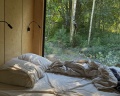 Настоящая находка для тех, кто хочет отдохнуть в гармонии с природой, не жертвуя комфортом! Уютные контейнерные домики с панорамными окнами создают ощущение единения с лесом и свежим воздухом. При этом окна полностью закрываются, так что ни свет, ни шум не помешают крепкому сну на большой удобной кровати. Также стоит отметить, что в доме и на веранде стояли букеты с цветами, которые потрясающе пахли.