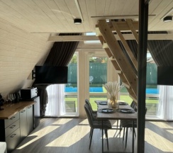Бесспорный фаворит наших гостей. Двухуровневый уютный дом с выходом к бассейну, который вмещает в себя максимум 4 человека. Стиль, атмосфера и комфорт - слова, описывающие полностью A-frame.
