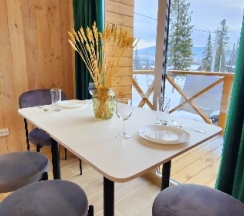 Снимали домик на несколько дней, чтобы переночевать и отдохнуть после катания. Со своей задачей справился отлично! Расположение удобное, 6 минут на такси до склона, для готовки все есть, даже духовка.