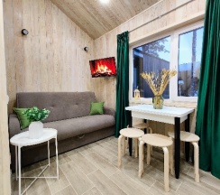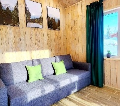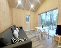 Домик небольшой, но очень уютный, есть все необходимое для комфортного отдыха, местоположение потрясающее, вид на заснеженный лес, гостили 6 дней и это был потрясающий отдых, спасибо💚