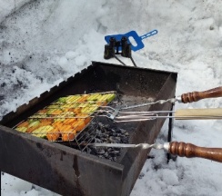 1. Мангальная зона. Ну сделайте вы немного отступ от лестницы дома и поставьте мангал. Прям в упор и на проходе стоит. Возможно это нам так повезло-были узкие дорожки прочищены.