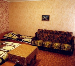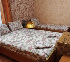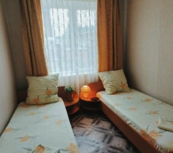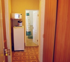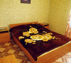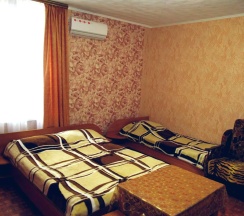 Уютный четырехместный двухкомнатный люкс с 2 односпальными и 1 двуспальной кроватью площадью 30 кв. м. В первой комнате: двуспальная кровать, сплит-система, телевизор, стол и два стула. Во второй комнате: две односпальные кровати, телевизор и сплит-система. В коридоре : стол, стулья, холодильник, электрический чайник, микроволновая печь, тарелки, кружки, столовые приборы. Санузел включает в себя раздельный туалет, душ и раковину.