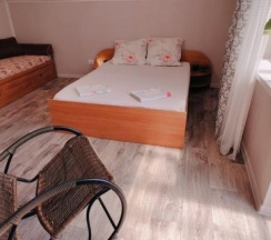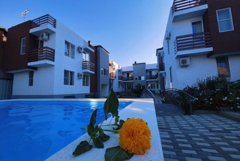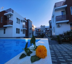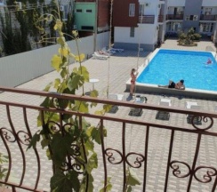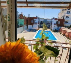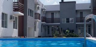 Отдыхали в первой половине июля с подругой и двумя детьми. Прекрасное место, шикарный бассейн, на море даже не ходили, хотя море в 5 минутах ходьбы. Очень рекомендую данный отель для отдыха. За 10 дней отдали 45 тысяч. Душ и туалет в номере, есть холодильник, кондиционер, если не первый этаж, то балкон, кухня общая, открыта с 6 утра до 9 вечера, бассейн доступен с 8 утра до 10 вечера. Гладильная доска, утюг, ведро и швабра стоят на этаже для общего пользования. Единственный минус - не меняли белье за все 10 дней и 1 раз убирались. На территории беседки и столы со стульями, есть место для авто как во дворе, так и за его пределами. Всем рекомендую для отдыха. Прекрасное место, не пожалеете! Нет мангала, но это не проблема, так как вокруг отеля полно мест с продажей шашлыка, много столовых и пр. Есть эконом номера, для кого-то это тоже важно.