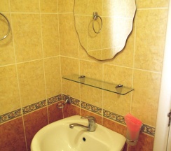 Комната полулюкс площадью 17 кв. м. имеет 1 двуспальная кровать, 1 кресло-кровать, шкаф с зеркалом, две тумбочки, телевизор, сплит-систему. Ванная комната: душ, раковина, туалет. На улице: прилегающий к комнате стол и лавочки.