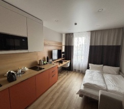 Апартаменты-студия прекрасная, уютная. Все чисто убрано, места для двоих гостей более чем достаточно)
