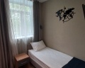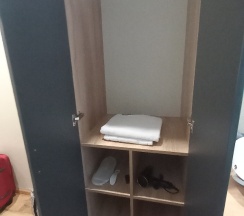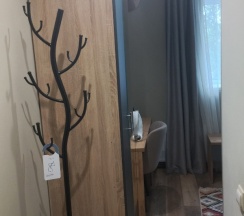 Номер уютный, чистый. Большая кровать, мягкий матрас. В номере есть шкаф, холодильник, чайник.