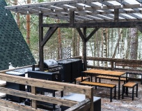 Чистая, ухоженная территория. Пусть и небольшая, но достаточно разнообразная. Есть гриль-зоны, беседка, батут для детей и столы для настольного тенниса.