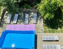 Отличное место для отдыха! Реально пускают с животными. Меня заселили в первом часу ночу с ЧЕТЫРЬМЯ собаками. Номера на разный кошелёк. Есть большая летняя кухня с посудой, микроволновкой, две плитки, два холодильника. Парковка на несколько машин, бассейн, мангал. Двор зеленый пальмы, хурма, сливы, абрикосы, виноград, розы. На территории и в номерах чисто и приятно. В пяти минутах магазины пятерочка и круглосуточный магнит. До пляжа можно дойти двумя путями- по дороге с не большим уклоном или по тропе через лес на горе. Нам с собанами был предпочтителен второй вариант. Особо хочеться отметить администраторов Юлю и Марину. Радушные, приветливые, золото а не девчата. Рекомендую, особенно тем, кто с животинками.