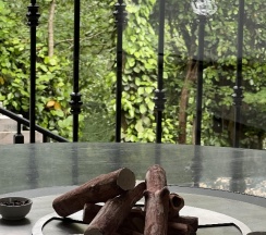 После посещения бани рекомендую посетить комнату релаксации с камином, где вас бонусом ждёт вкусный краснополянский чай с медом и баранками.