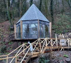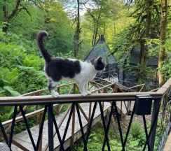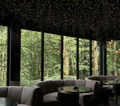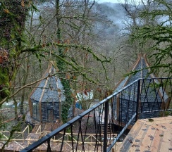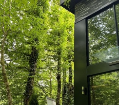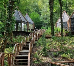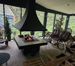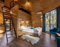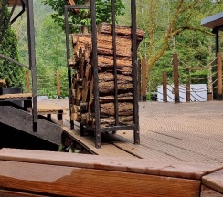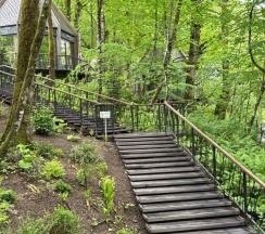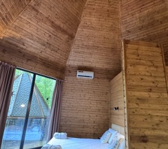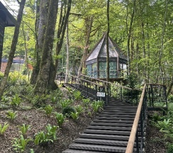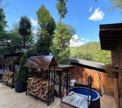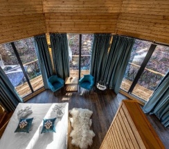 Природа, положительные, высокий уровень сервиса запомнятся надолго! Глэмпинг находится в очень живописной месте, вековой лес, горная река, звездное небо, пение птиц на рассвете. Панорамные окна в домиках это что-то, в любую погоду вид на лес и горы, просто сразу релакс, только от одного вида. Все удобства в домике, теплый пол в санузле, кровать с подогревом, отделка деревом и высокий потолок. Веранда вокруг домика завершает композицию.