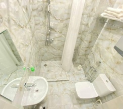 Из минусов: нет света у прикроватных тумб (типа что-то ночника), фена нет, коврика в ванной (голый кафель = скользко), но и без этого жить можно )